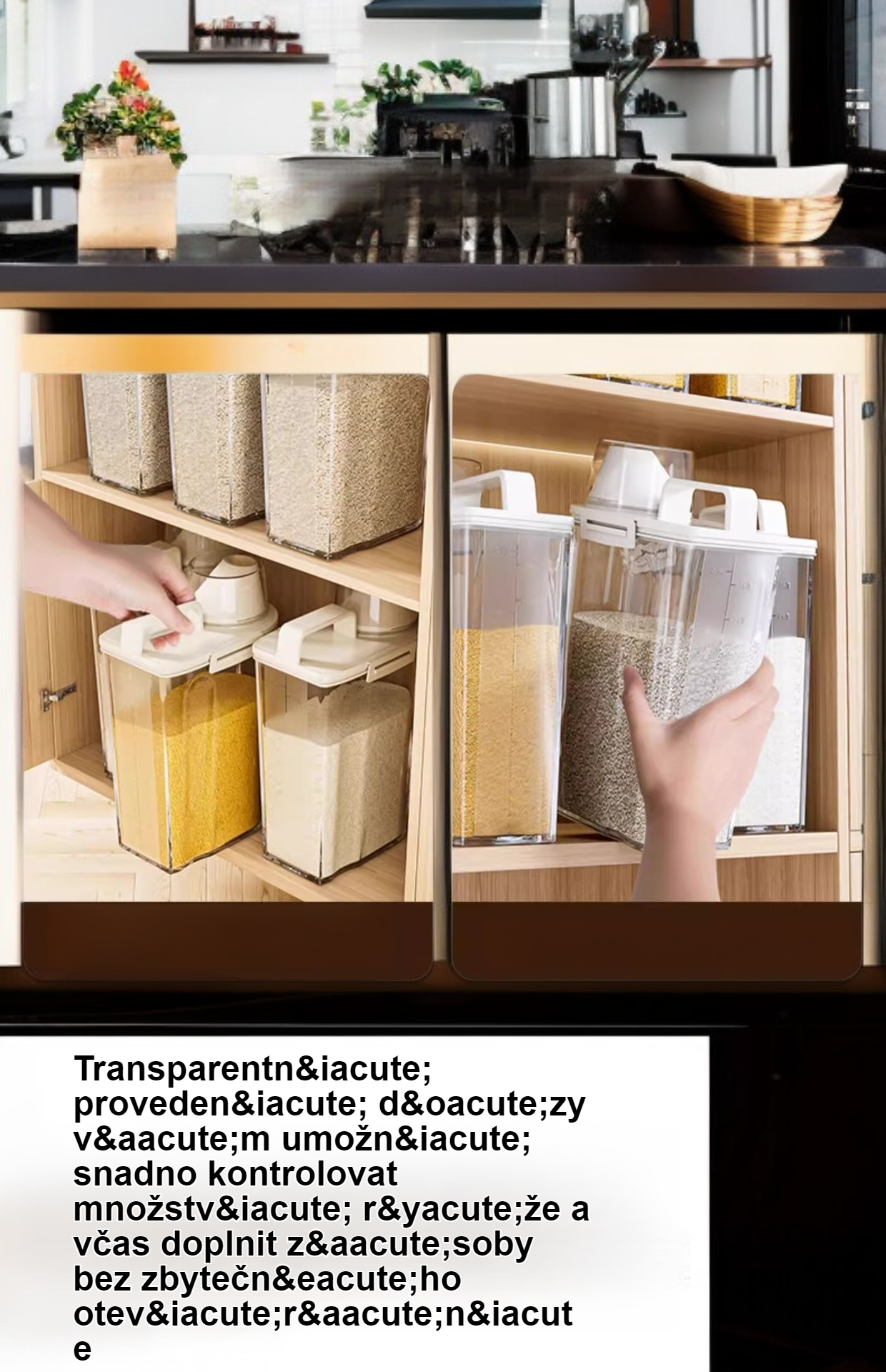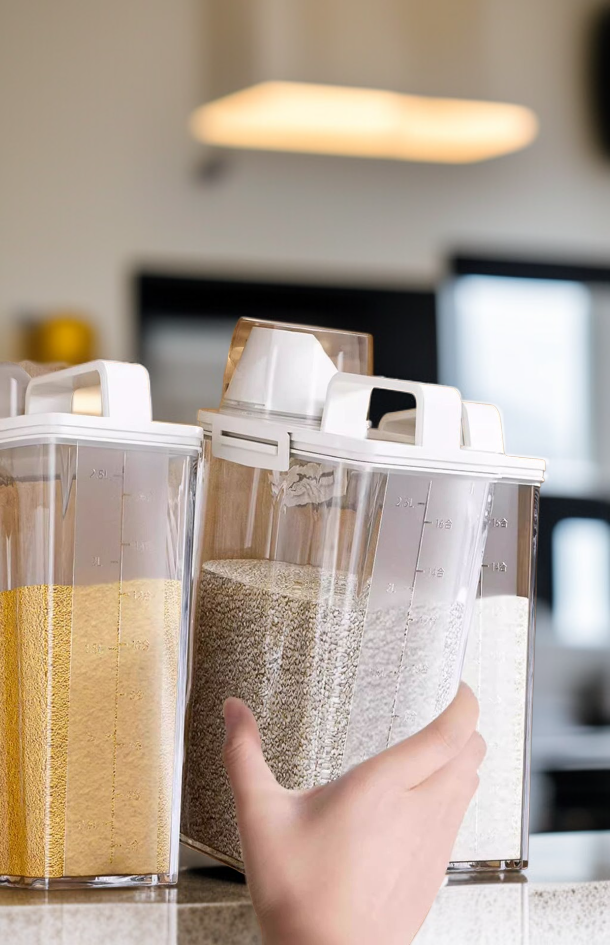 Dóza na rýži pro domácí použití, odolná proti hmyzu, vlhkosti a vzduchotěsná.